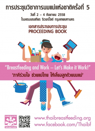 การประชุมวิชาการนมแม่แห่งชาติครั้งที่ 5 หัวข้อ ภาคีร่วมใจ ช่วยแม่ไทย ให้เลี้ยงลูกด้วยนมแม่ (Breastfeeding and Work – Let’s Make it Work!) จัดขึ้นระหว่างวันที่ 2 – 4 กันยายน 2558 ณ โรงแรม มณเฑียร ริเวอร์ไซด์ กรุงเทพมหานคร