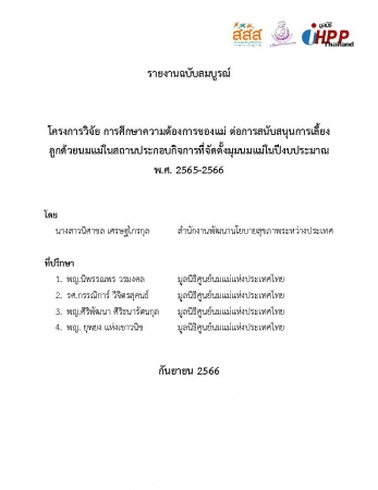 โครงการวิจัย การศึกษาความต้องการของแม่ ต่อการสนับสนุนการเลี้ยง